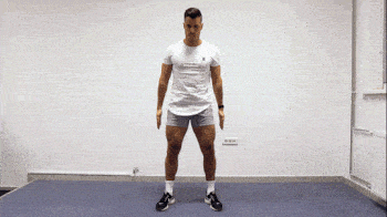 Stell Dich schulterbreit hin. Die Füße sind leicht nach außen gedreht und die Arme liegen eng am Körper. Aus der Anfangsposition bewegst Du Dich langsam nach unten und machst eine Kniebeuge. Gleichzeitig gehen die Arme nach vorne. Achte darauf, dass Dein Rücken die ganze Übung über gerade bzw. in einer neutralen Lage ist. Wenn Du den finalen Punkt erreichst, achte auf eine intensive Muskelkontraktion Deiner Beine, Arme sowie der zentralen Körperpartie (engl. Core)