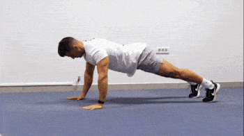 Um die Übung perfekt auszuführen, stütze Dich zuerst mit ausgestreckten Armen und Deinen Zehen am Boden ab. Die Hände stehen etwas breiter als schulterbreit auseinander. Achte darauf, dass Dein Körper fest angespannt ist und aktiviere zugleich die Muskeln Deiner zentralen Körperpartie.